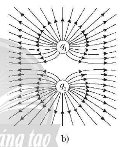 Hình a: q1>0, q2<0; Hình b: q1>0,q2>0; Hình c: q < 0 .