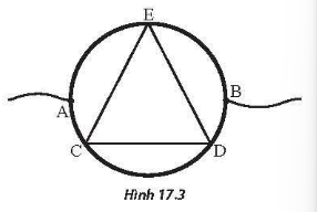 b) Bây giờ không nối tắt giữa M và N như câu a mà người ta dùng một khung dây dẫn kín có dạng một tam giác đều CDE có điện trở không đáng kể mà ba đỉnh luôn tiếp xúc và có thể xoay trượt trên đường tròn (Hình 17.3). Tính điện trở lớn nhất và nhó nhất của đoạn mạch AB theo R0.