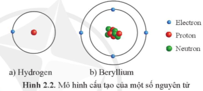 Quan sát Hình 2.2, hãy chỉ ra những sự khác nhau về thành phần nguyên tử giữa nguyên tử hydrogen và beryllium