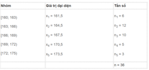 –  Ta chia bảng ghép nhóm thành các phần có độ dài bằng nhau: [160; 163); [163; 166); [166; 169); [169; 172); [172; 175)