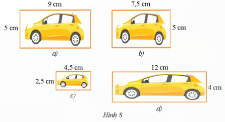 Tỉ lệ của chiều dài – chiều dài và chiều rộng – chiều rộng của hình 8a và hình 8b lần lượt là: