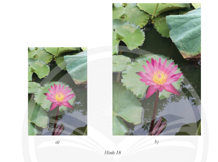 Vì hình 18b là Hình 18a sau khi phóng to với $k = 1,5$ nên kích thước Hình 18b sẽ gấp 1,5 lần kích thước Hình 18a.