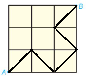 Quan sát hình dưới và chỉ ra ít nhất hai cách, để một con kiến bò từ A đến B theo đường chéo của các hình vuông nhỏ