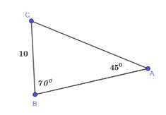 => b=$\frac{a.\sin B}{\sin A}=\frac{10.\sin70^0}{\sin45^0}\approx13,29$