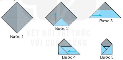 Quan sát các bước hướng dẫn gấp một tờ giấy hình vuông như hình dưới đây