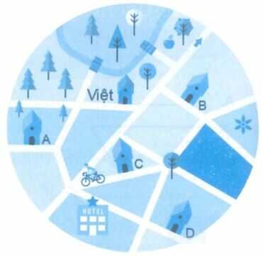 Cho hình vẽ bên. Biết nhà của Việt và nhà của Nam ở hai đường song song với nhau. Hỏi trong các ngôi nhà A, B, C, D, đâu là nhà của Nam?